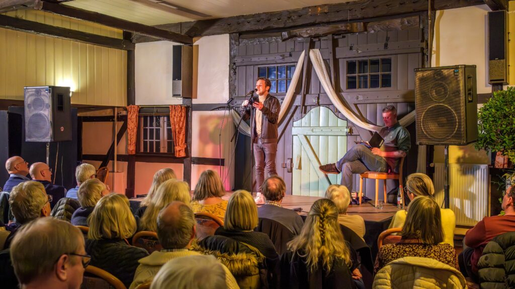 Bereits mehrfach war Poetry-Urgestein und Moderator Björn Högsdal mit herausragenden Slammerinnen und Slammern bei der Kulturkate zu Gast – immer vor ausverkauftem Haus und begeistertem Publikum. Auch am 26. Februar führte er das Molfseeer Publikum wieder durch einen hochklassigen Dichterwettstreit und hatte vier ausgezeichnete Bewerber*innen mitgebracht:
